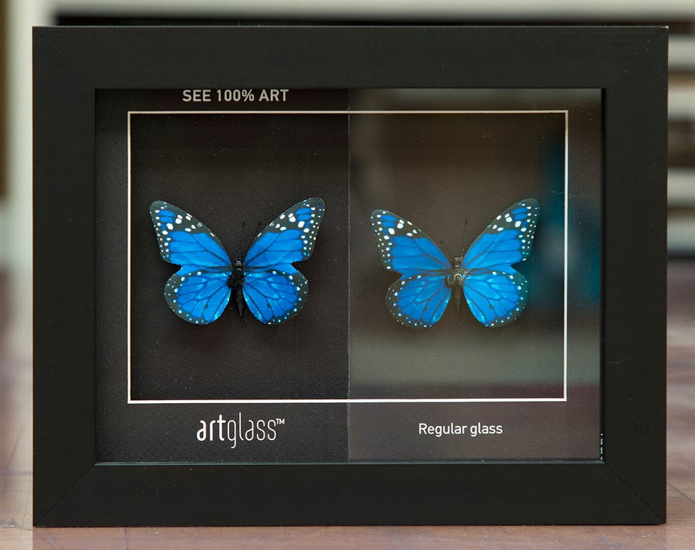 Het glas lijkt daardoor bijna onzichtbaar. Museumglas hierdoor een hoog ontspiegelend vermogen(1% reflectie) terwijl het kleurdoorlating niet verhinderd.