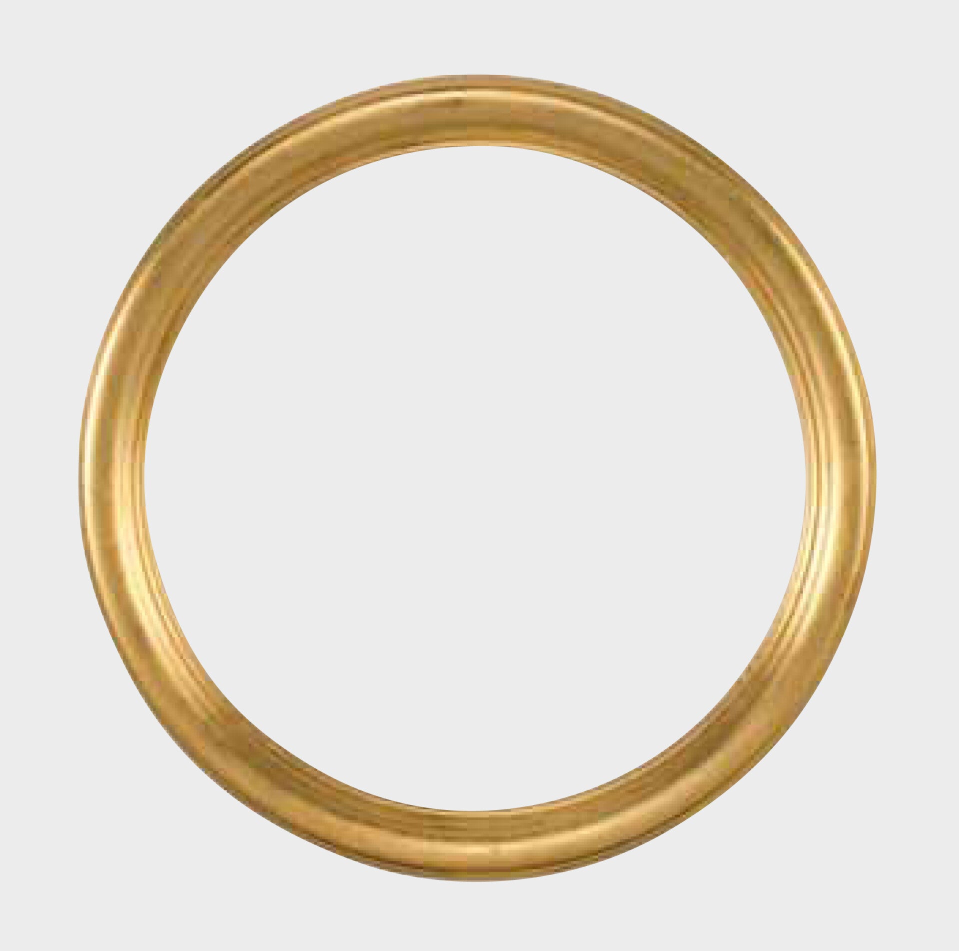 Ronde gouden houten lijst. De maat van de lijst betreft de binnenmaat van de sponning met een marge van ongeveer 3 mm rondom. De lijsten kunnen zowel los als met glas en achterkant worden aangeschaft. Ze zijn altijd uitgerust met een ophangsysteem.